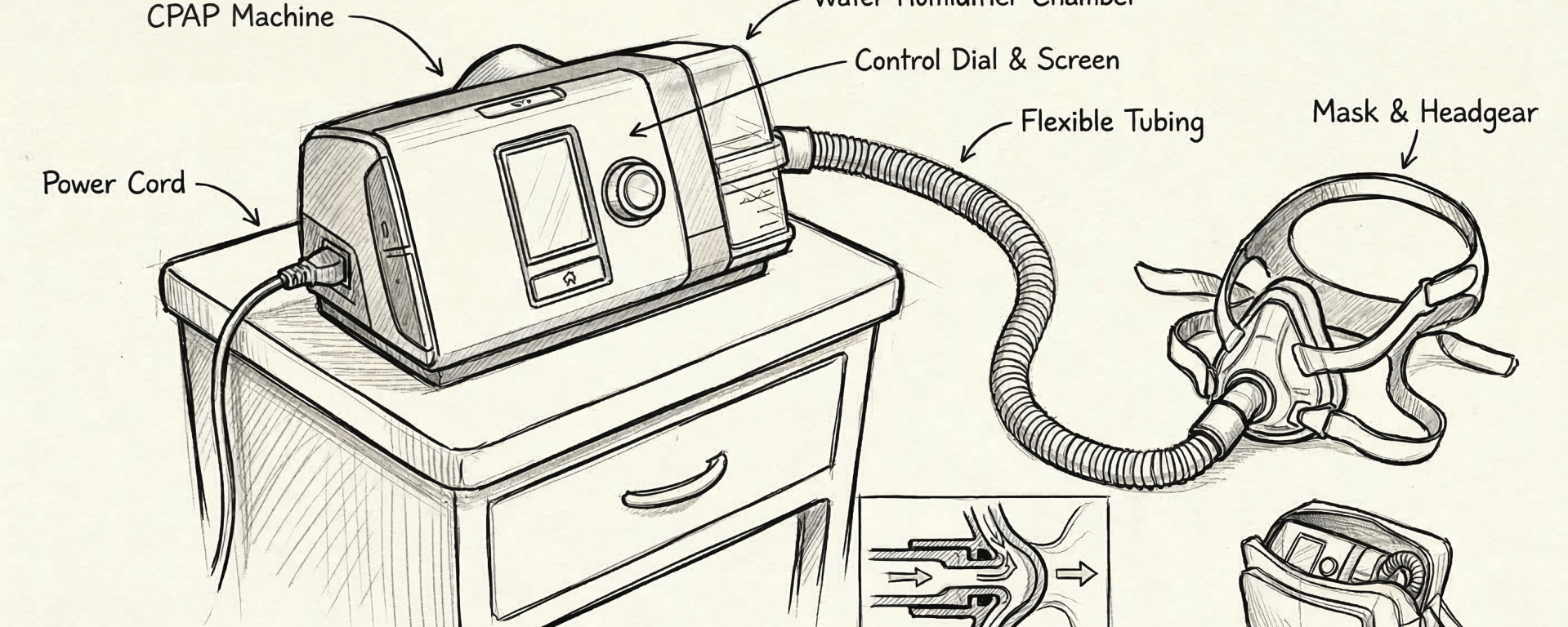 Obstructive sleep apnea is characterized by recurrent collapse of the upper airway during sleep, resulting in impaired ventilation, oxygen desaturation, fragmented sleep, and excessive daytime somnolence. When untreated, it is associated with significant long-term cardiopulmonary morbidity. Continuous positive airway pressure (CPAP) therapy has therefore become a standard and effective treatment. The device functions by delivering a continuous stream of pressurized air, sufficient to splint the upper airway open and prevent collapse throughout the respiratory cycle.
